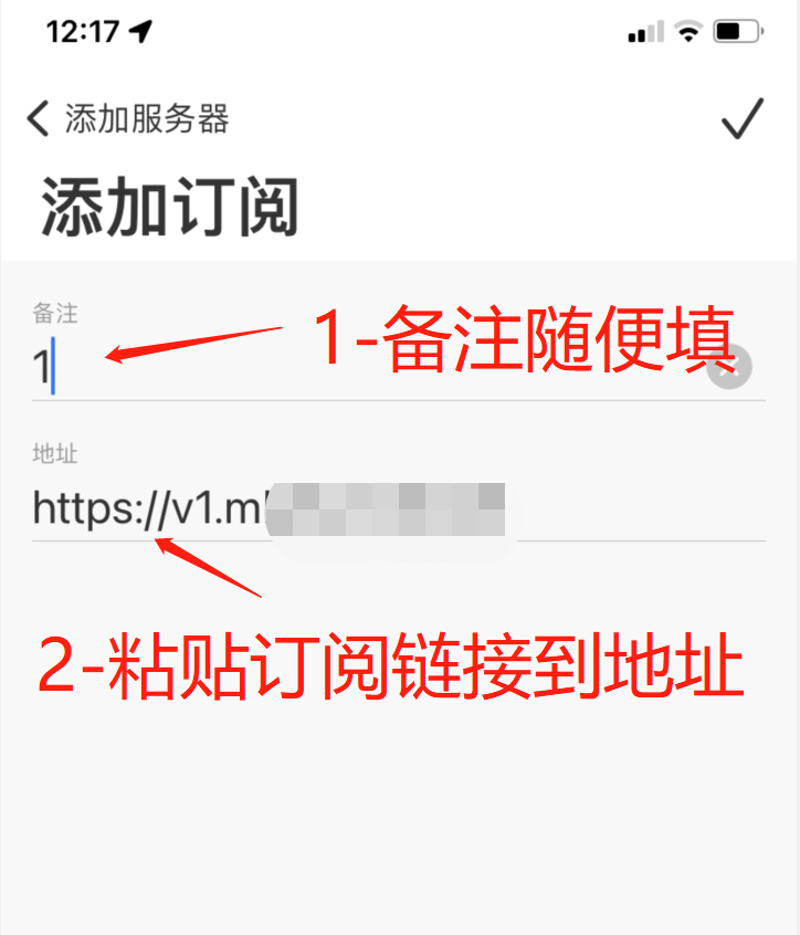 14:备注随便填,把从网站上复制出来的订阅地址,粘贴到地址下,然后点击完成