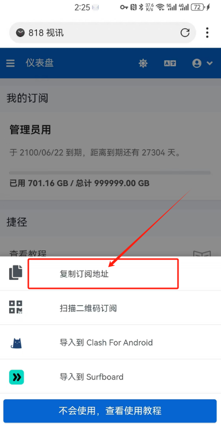 12:浏览器打开官网 818sx.com 登录后主页有个一键订阅点击